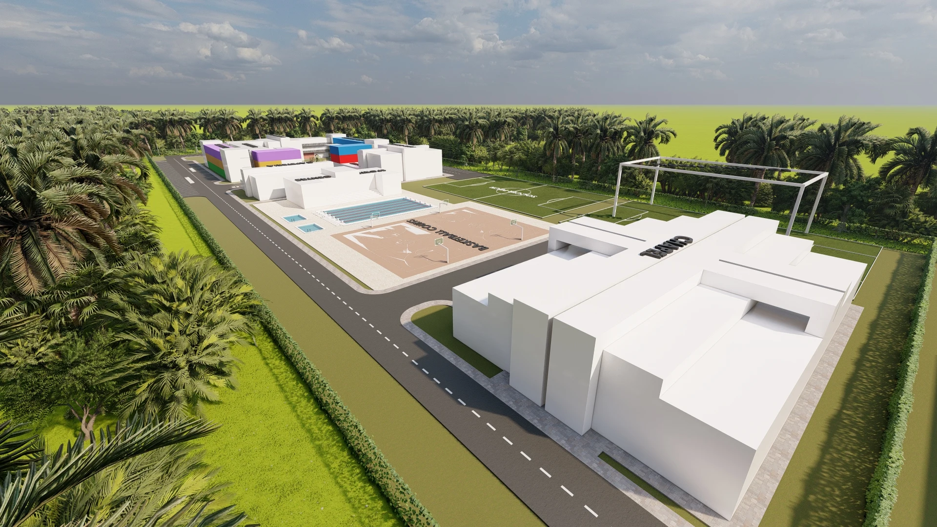 Contemporary African architecture organizes academic, arts, and sports precincts around shaded courtyards, fostering
