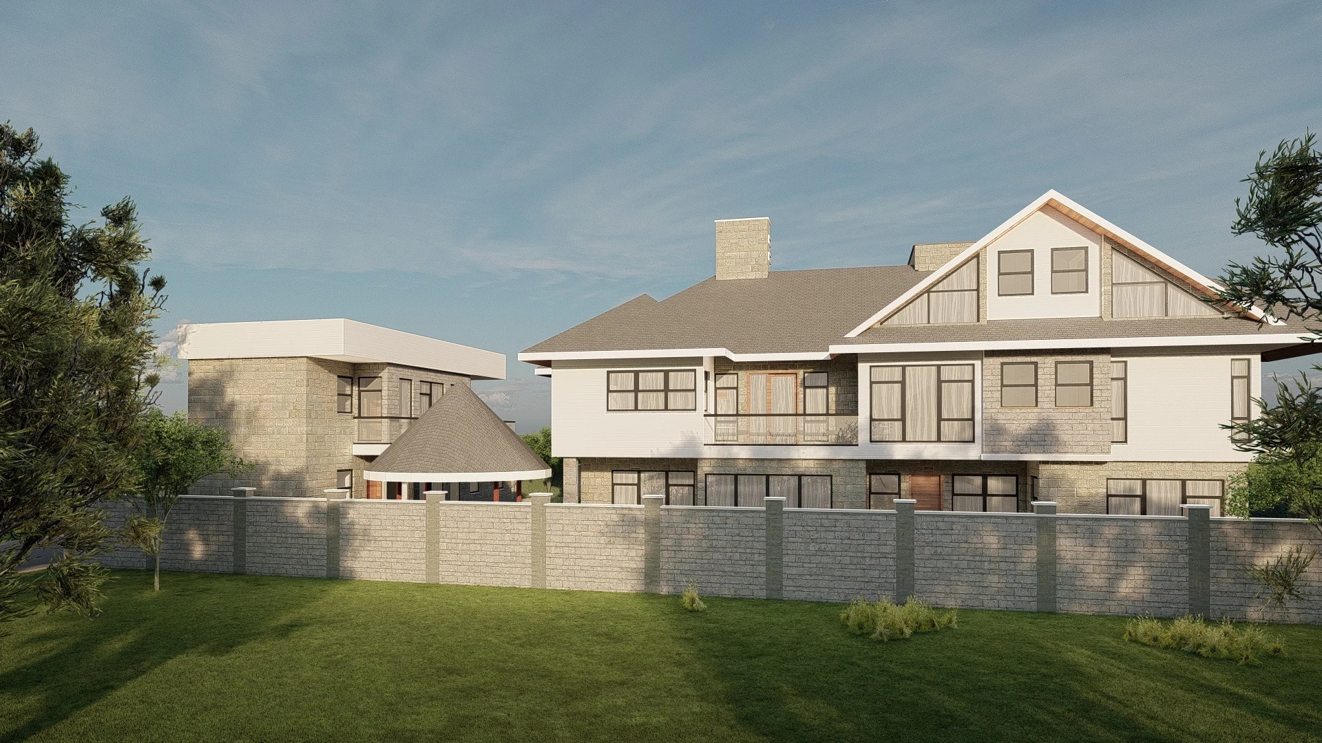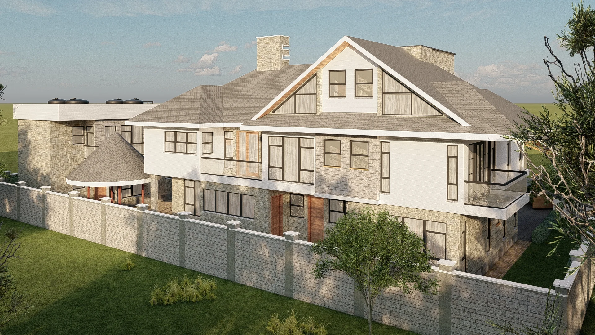 This six-bedroom modern residence along Njathaini Road blends the elegance of a spacious townhouse with a country-inspired feel. The