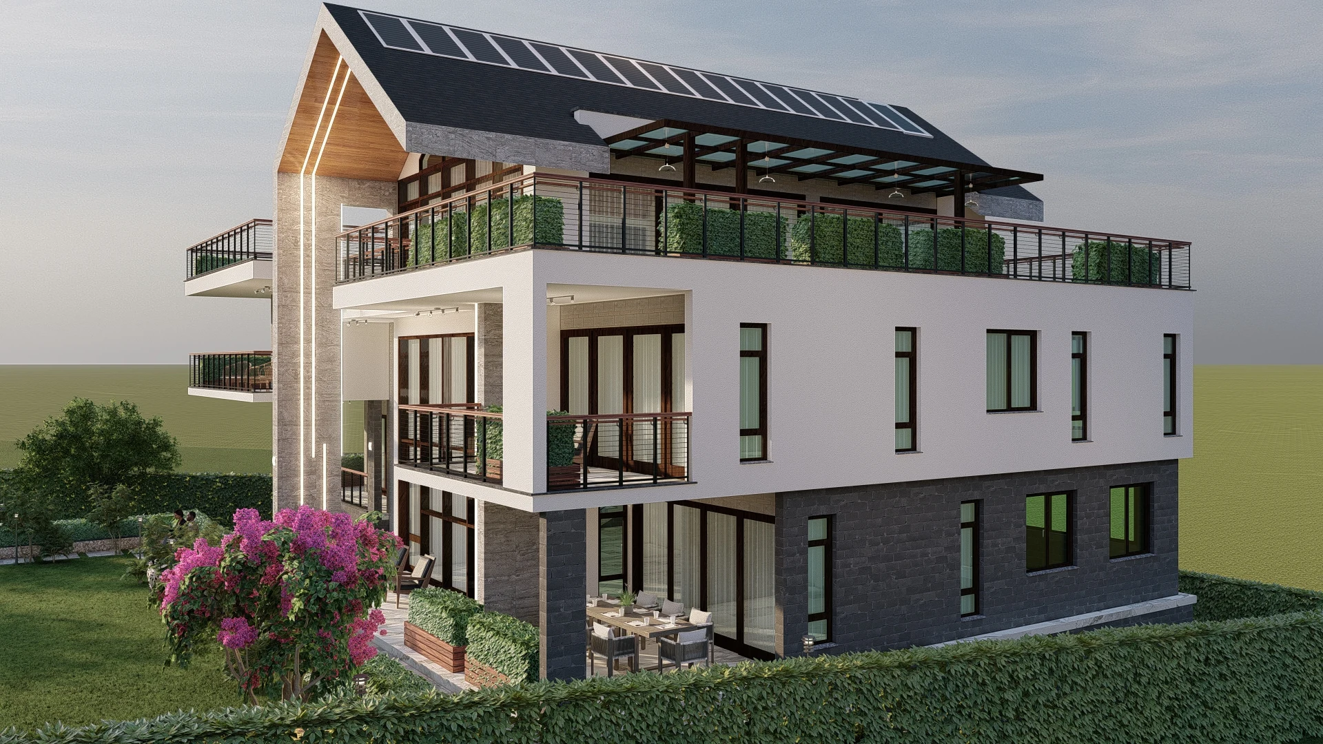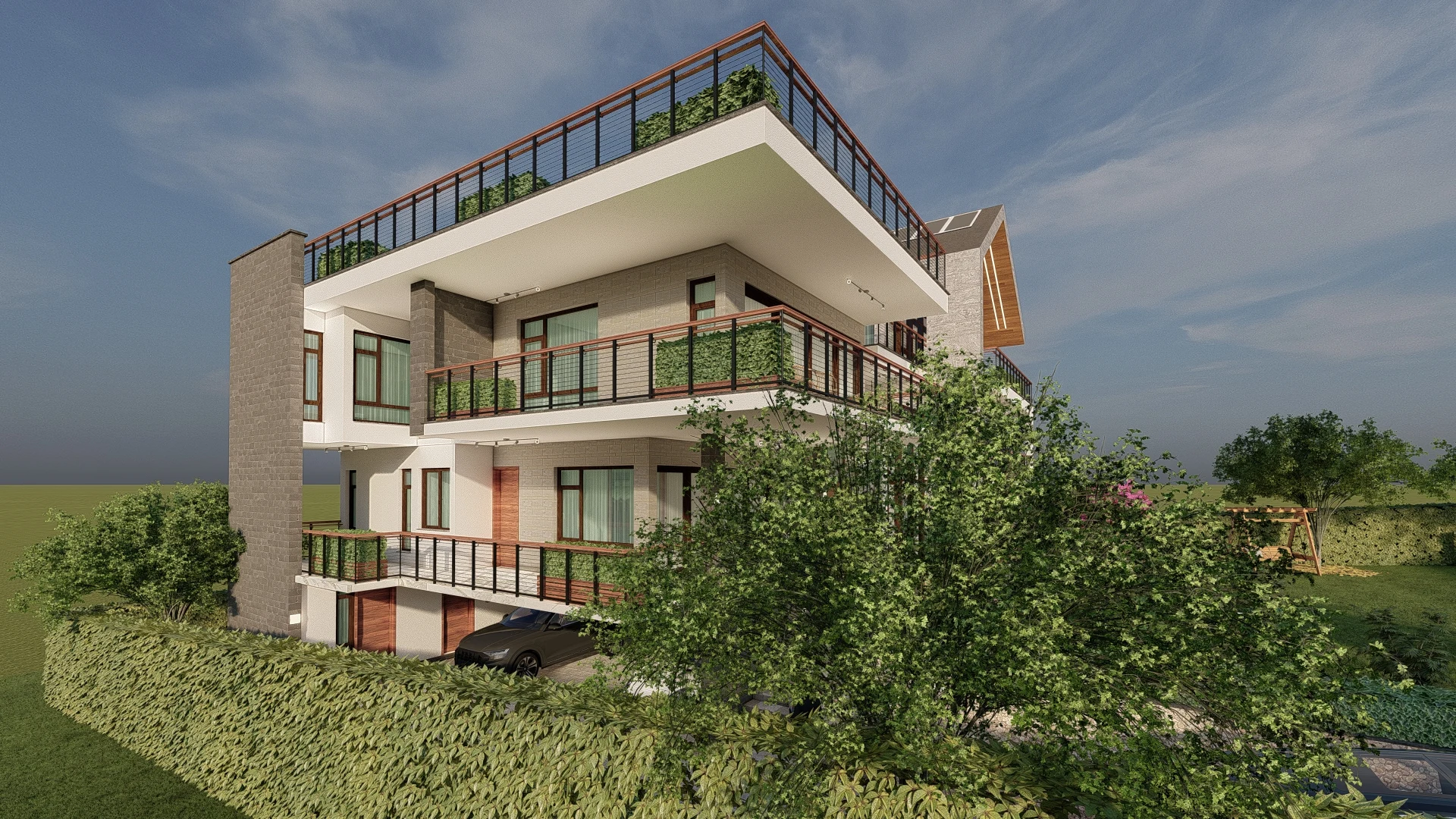 This five-bedroom modern residence at Kijani Ridge (Plot LR No. 28867/1, Parcel R-183) reimagines traditional forms with a bold, contemporary take on the barn roof style. Set on a quarter-acre plot, the design is defined by a striking framing element, wide terraces, expansive windows for optimal views, and open-plan living spaces that enhance flow and connectivity. With a project budget of KES 50 million, construction is set to begin in the first quarter of 2025. This home is designed to blend modern aesthetics with functional elegance, offering a refined yet inviting living experience.