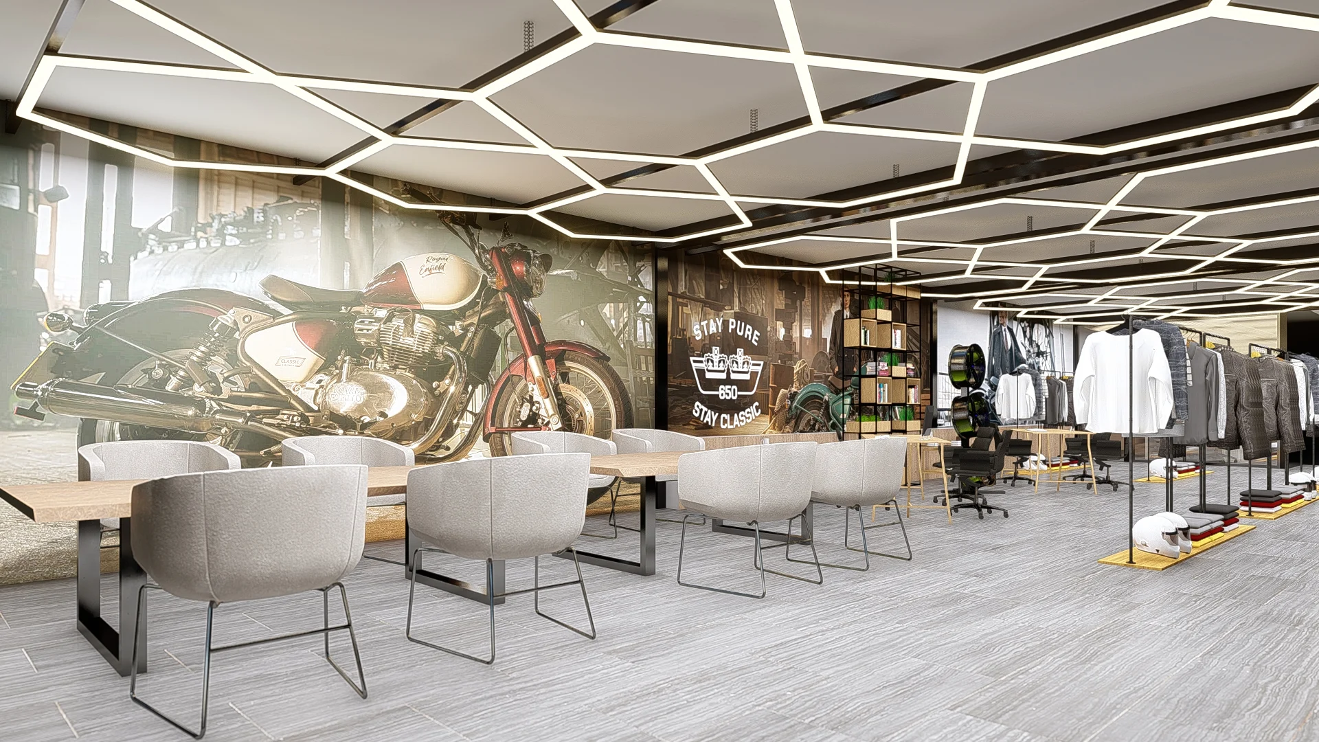 brand experience. Designed to showcase motorcycles, accessories, and apparel,